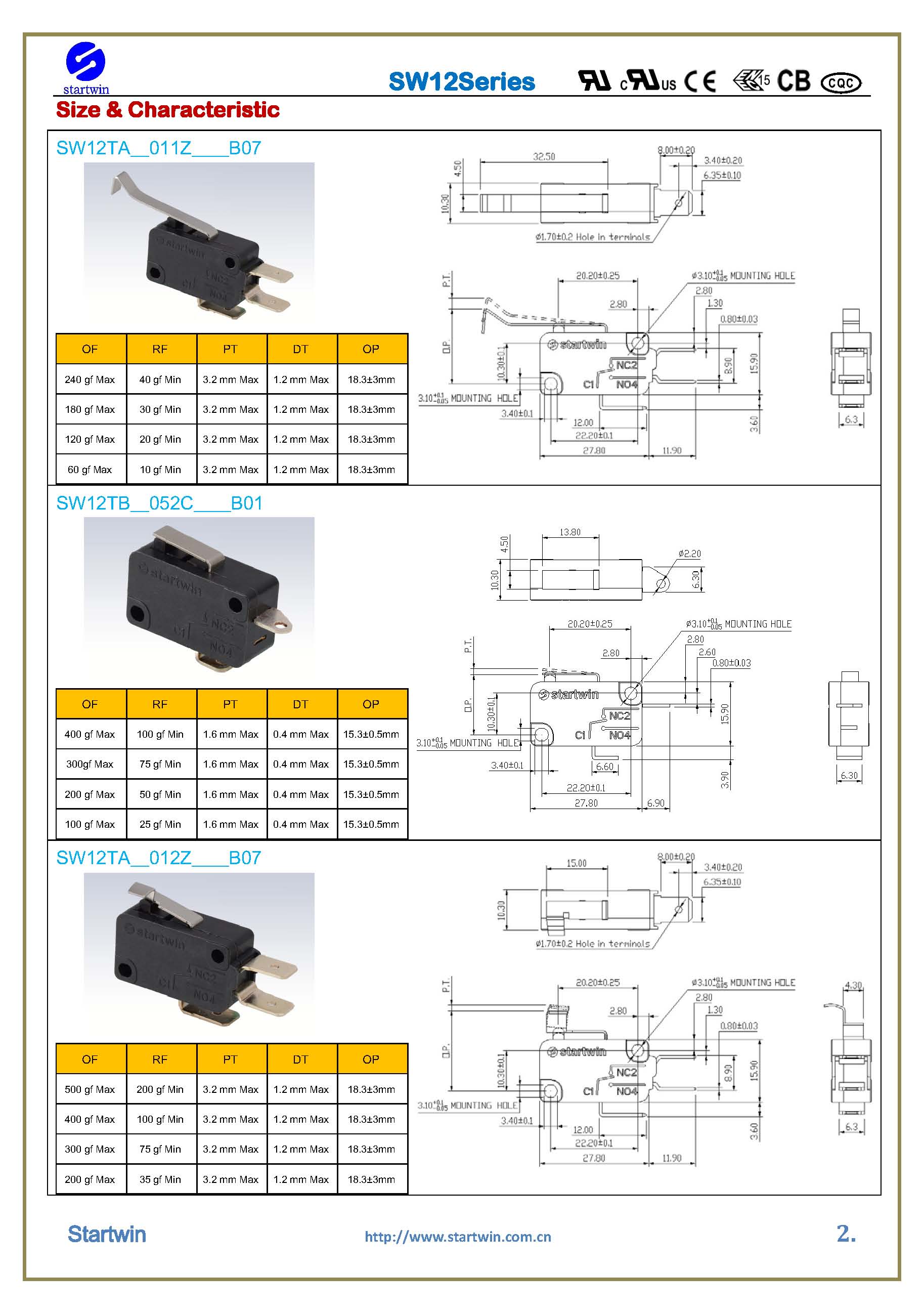 Mechanical life: 2,000,000 cycles min;