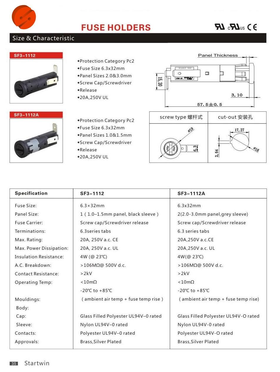 保险丝规格: ¢6.3×32mm 面板安装尺寸:1.0-1.5mm