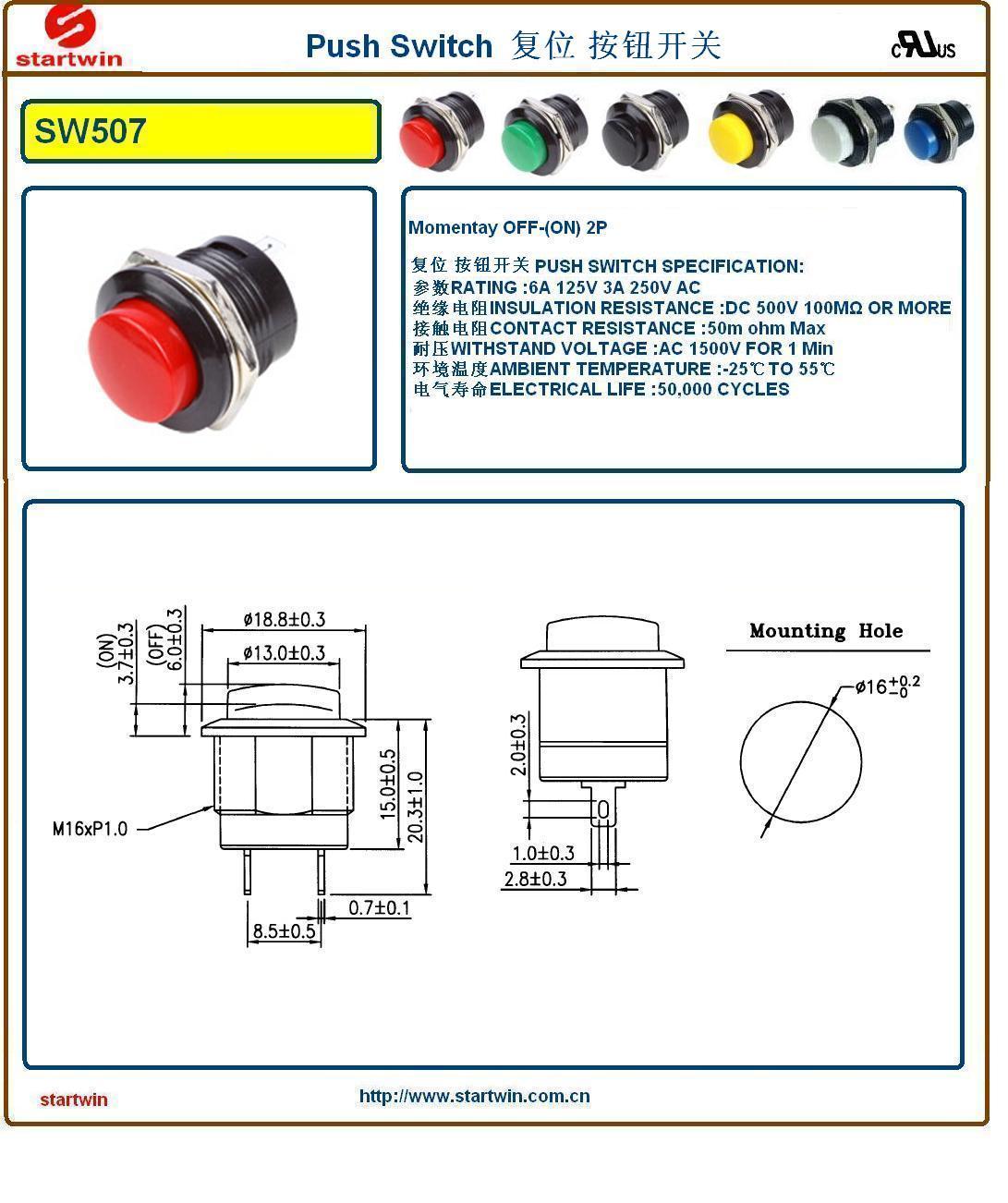 按钮开关规格PUSH SWITCH SPECIFICATION:
