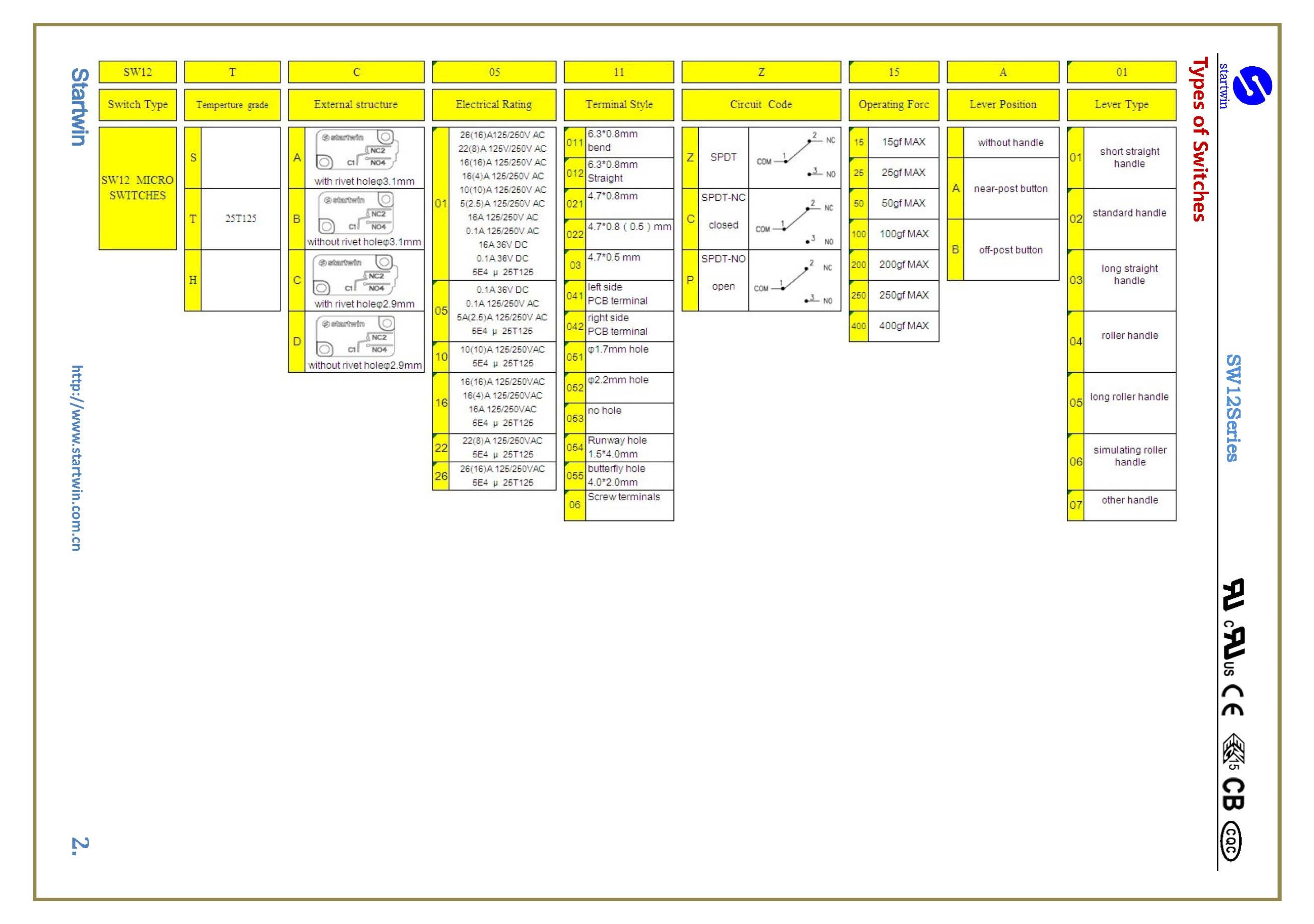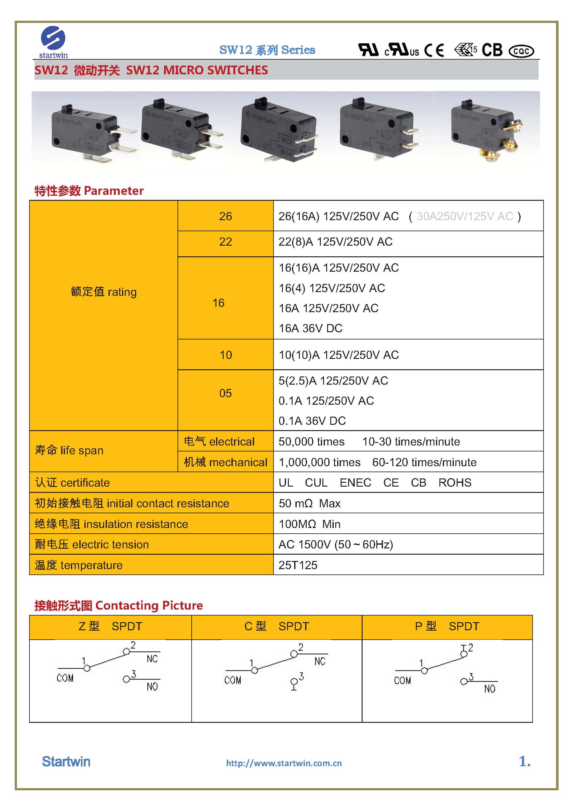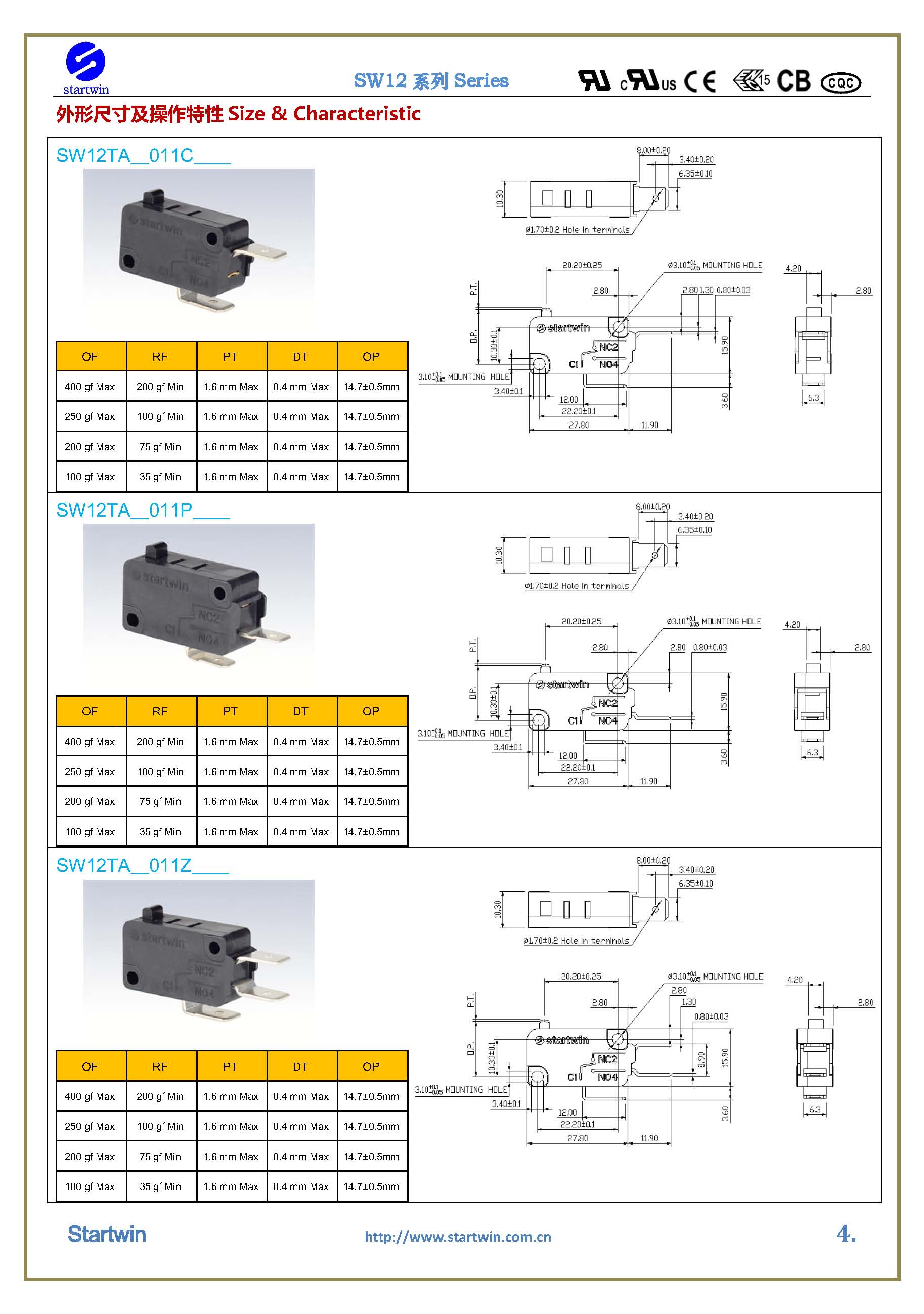 产品型号:SW12TA-011C.P.Z- Series Micro Switch