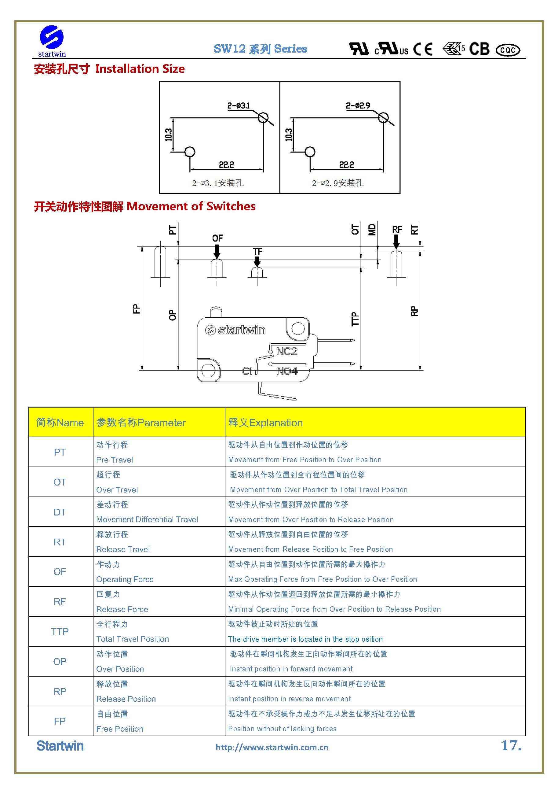 SW12TA-012C.P.Z- 系列微动开关