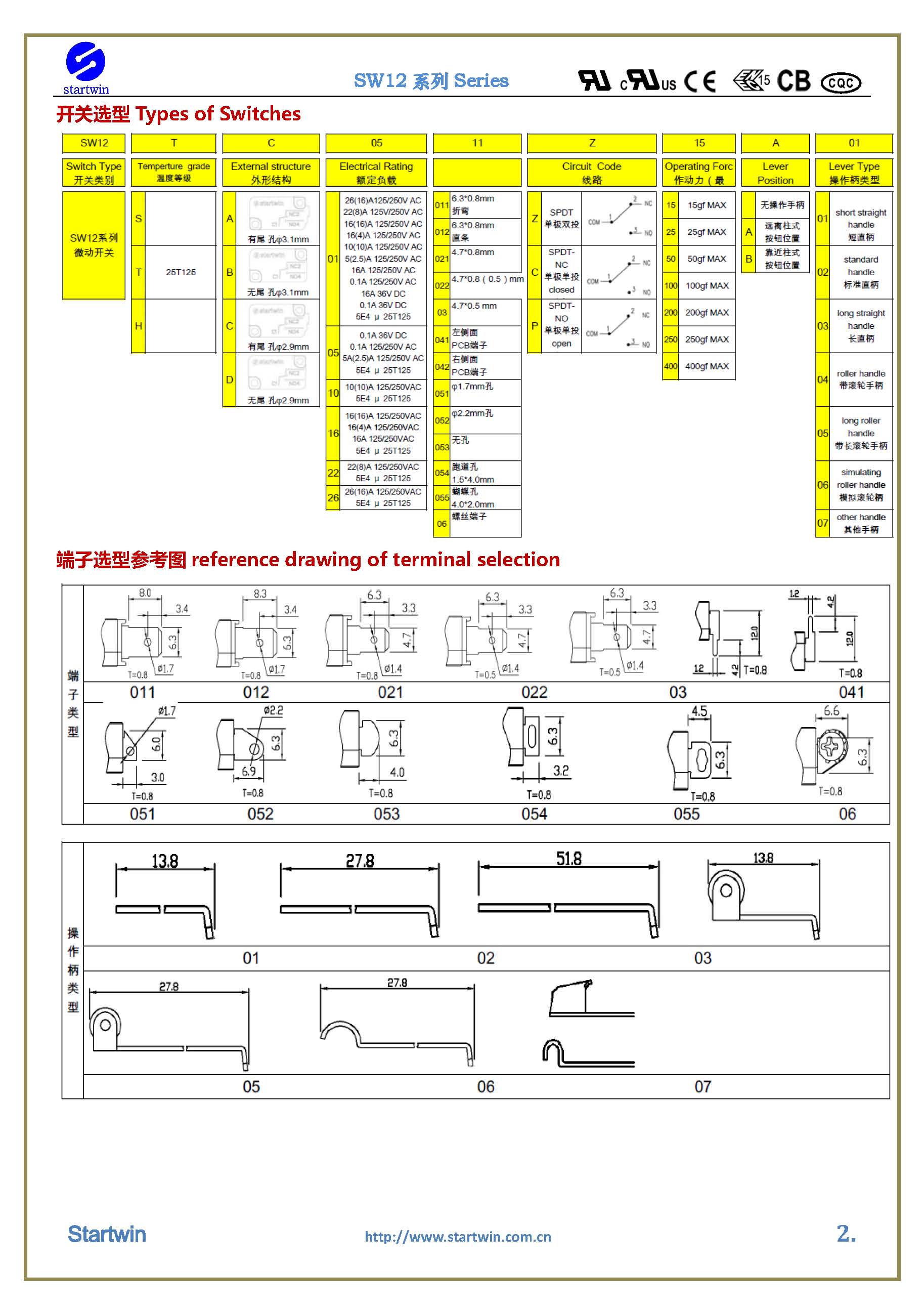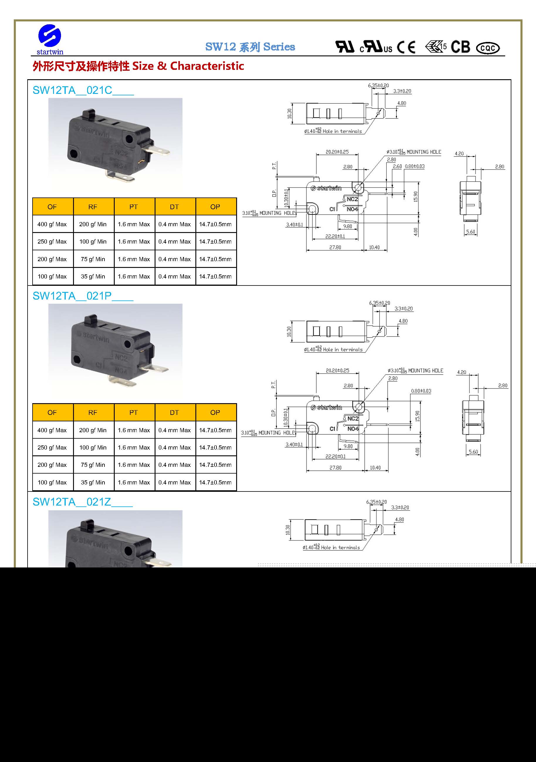 产品型号:SW12TA-021C.P.Z- Series Micro Switch