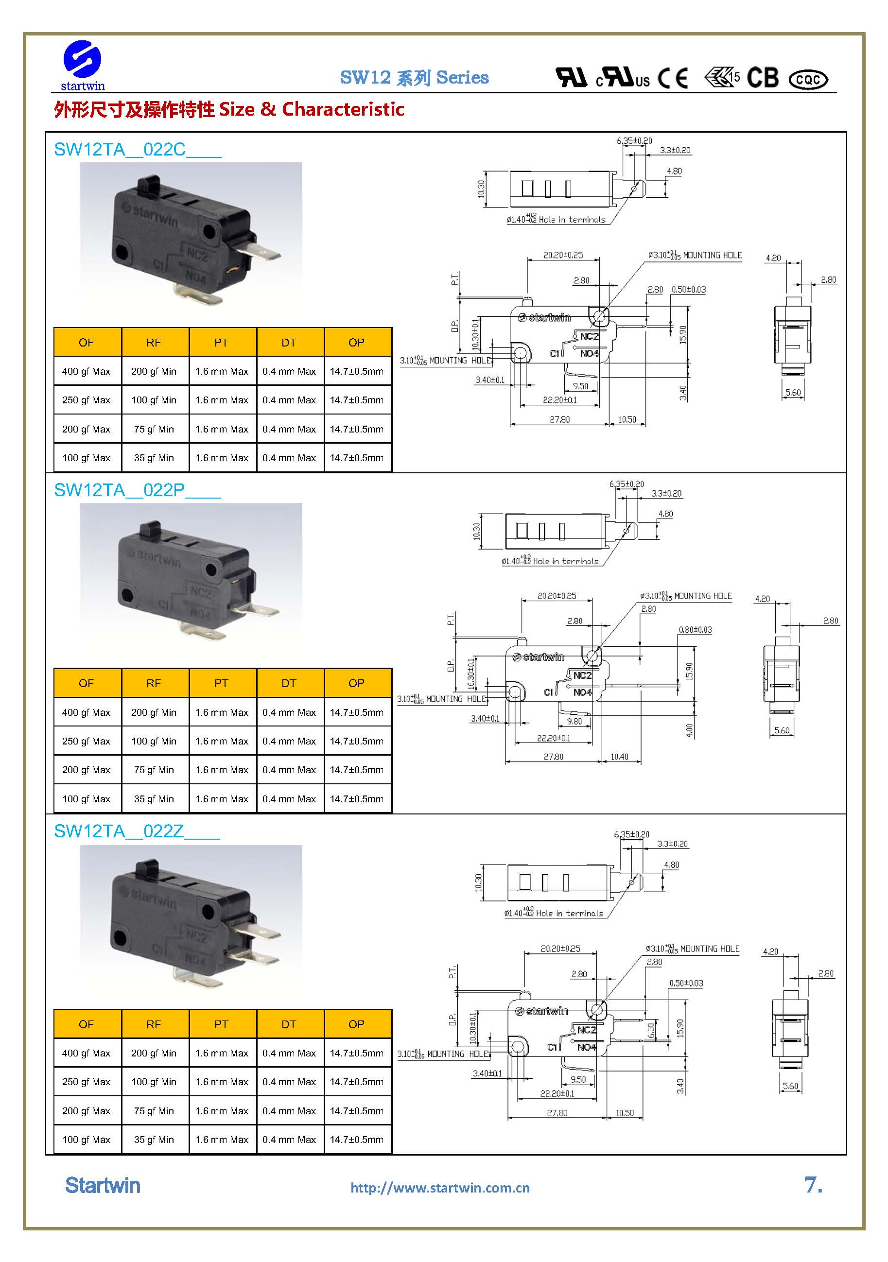 产品型号:SW12TA-022C.P.Z- Series Micro Switch