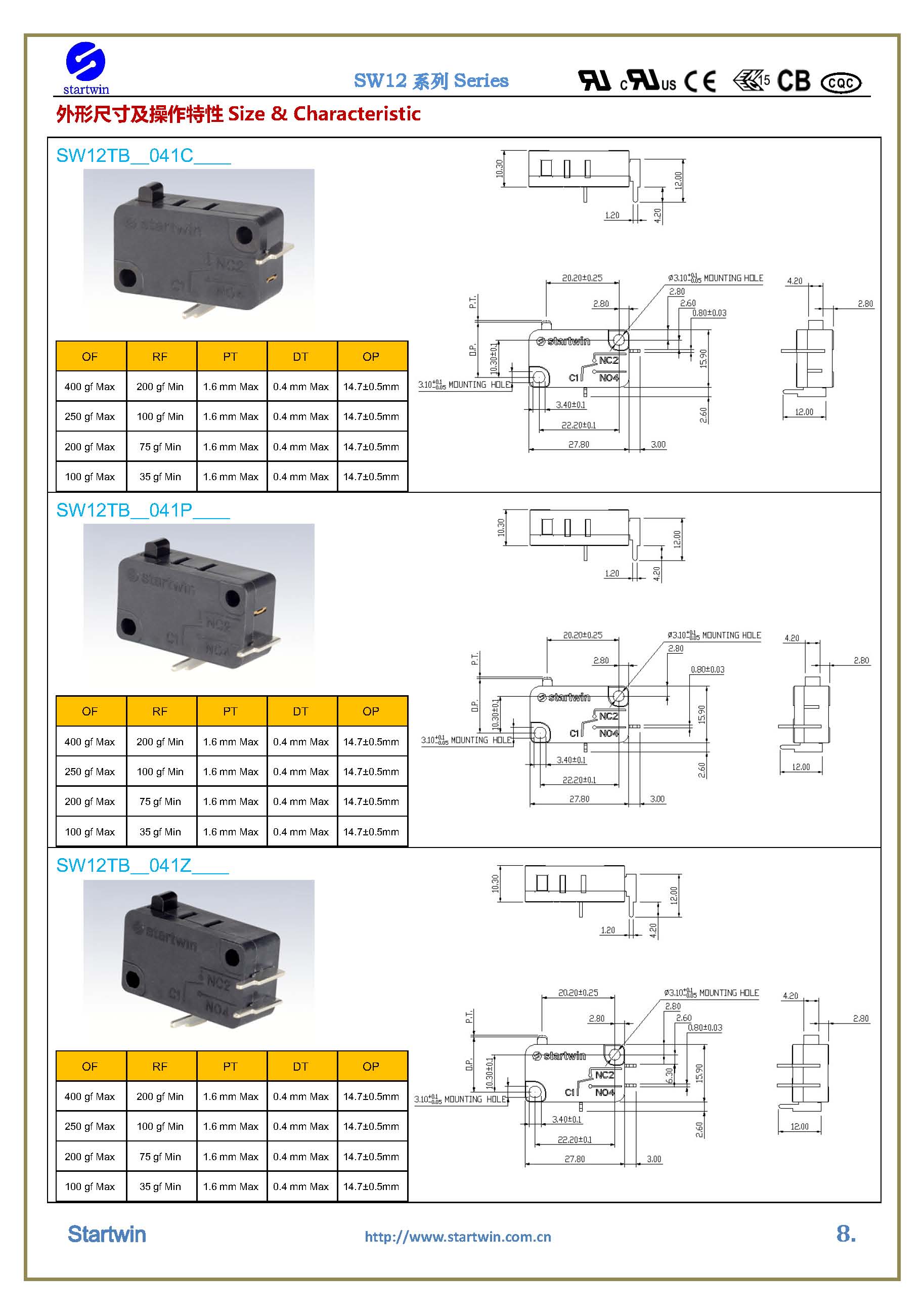 产品型号:SW12TB-041C.P.Z- Series Micro Switch