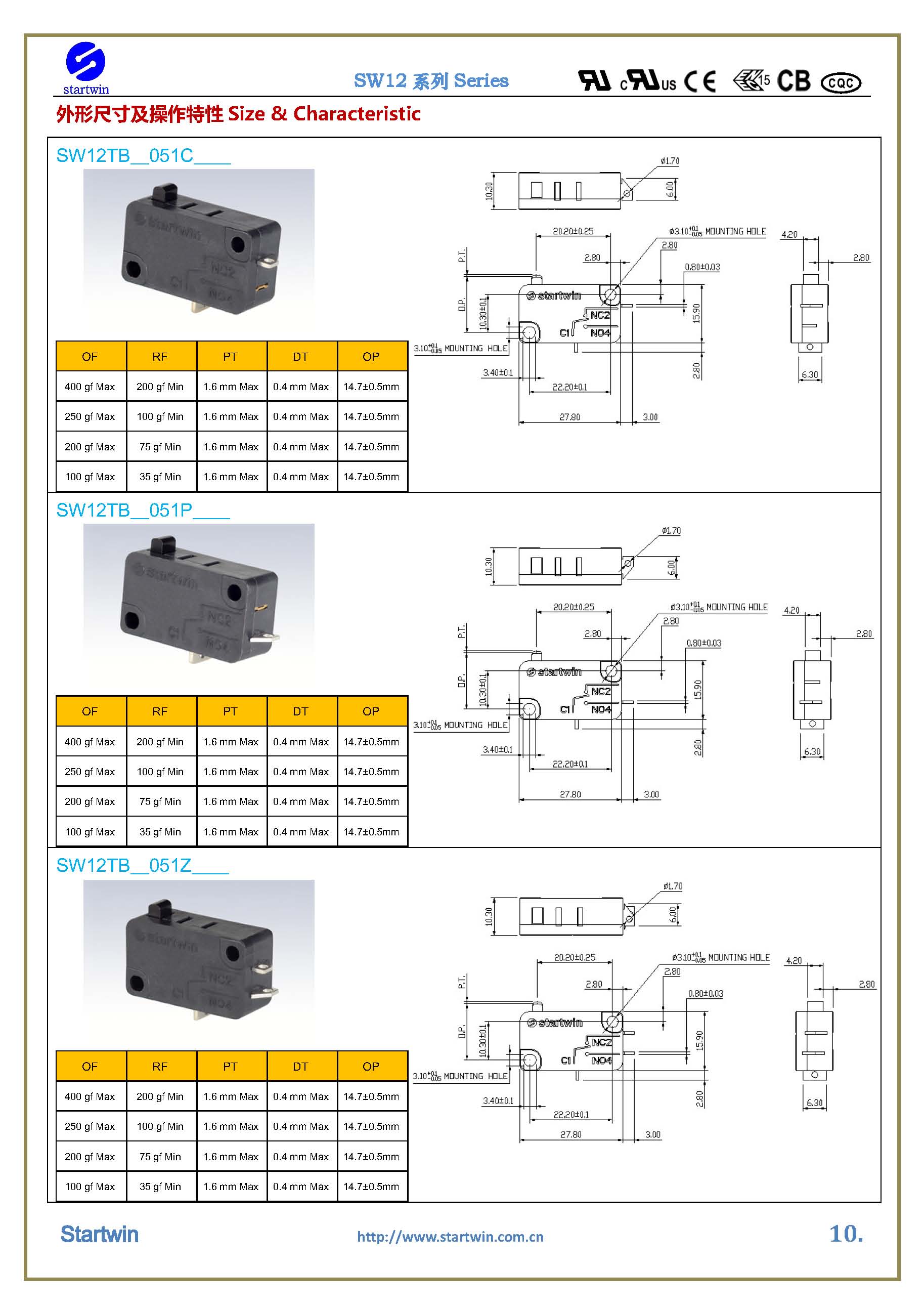 | Ratings: | 16(4)A 125/250VAC 1/2HP 125VAC; 3/4HP 250VAC 0.4A/125VDC; 0.2A/250VDC 10.1A 125VAC Tungsten |