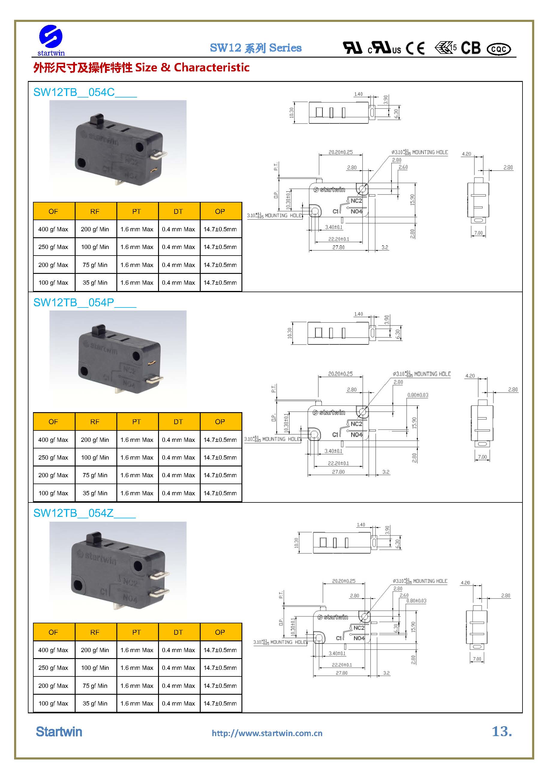 产品型号:SW12TB-054C.P.Z- series