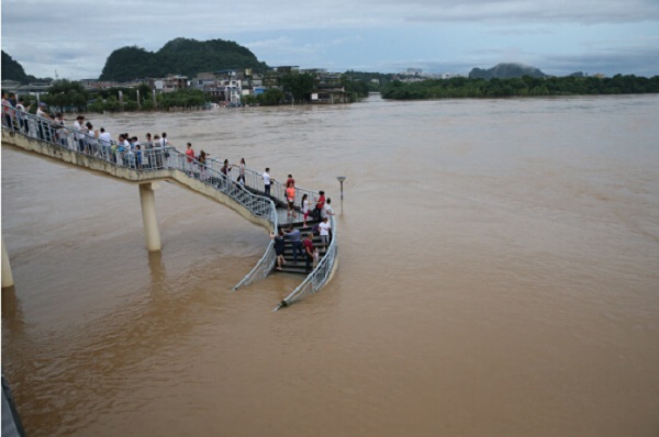 广西龙胜各族自治县滨江洲公园被洪水淹没。当日,广西龙胜各族自治县遭受暴雨袭击,县内多条公路因塌方中断,部分民宅和农田被淹,县城内涝。龙胜县已启动重大气象灾害应急响应,全力做好防灾救灾工作。