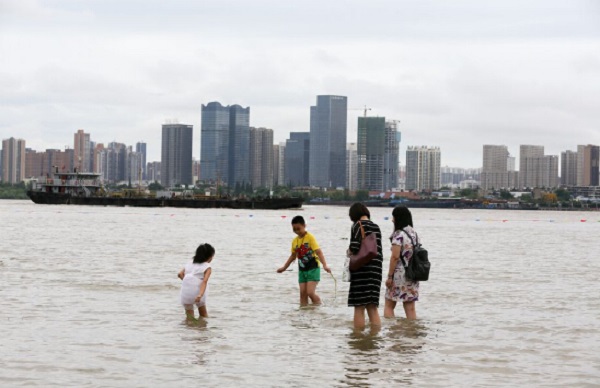 武汉,受流域强降雨影响,长江中下游水位全面上涨